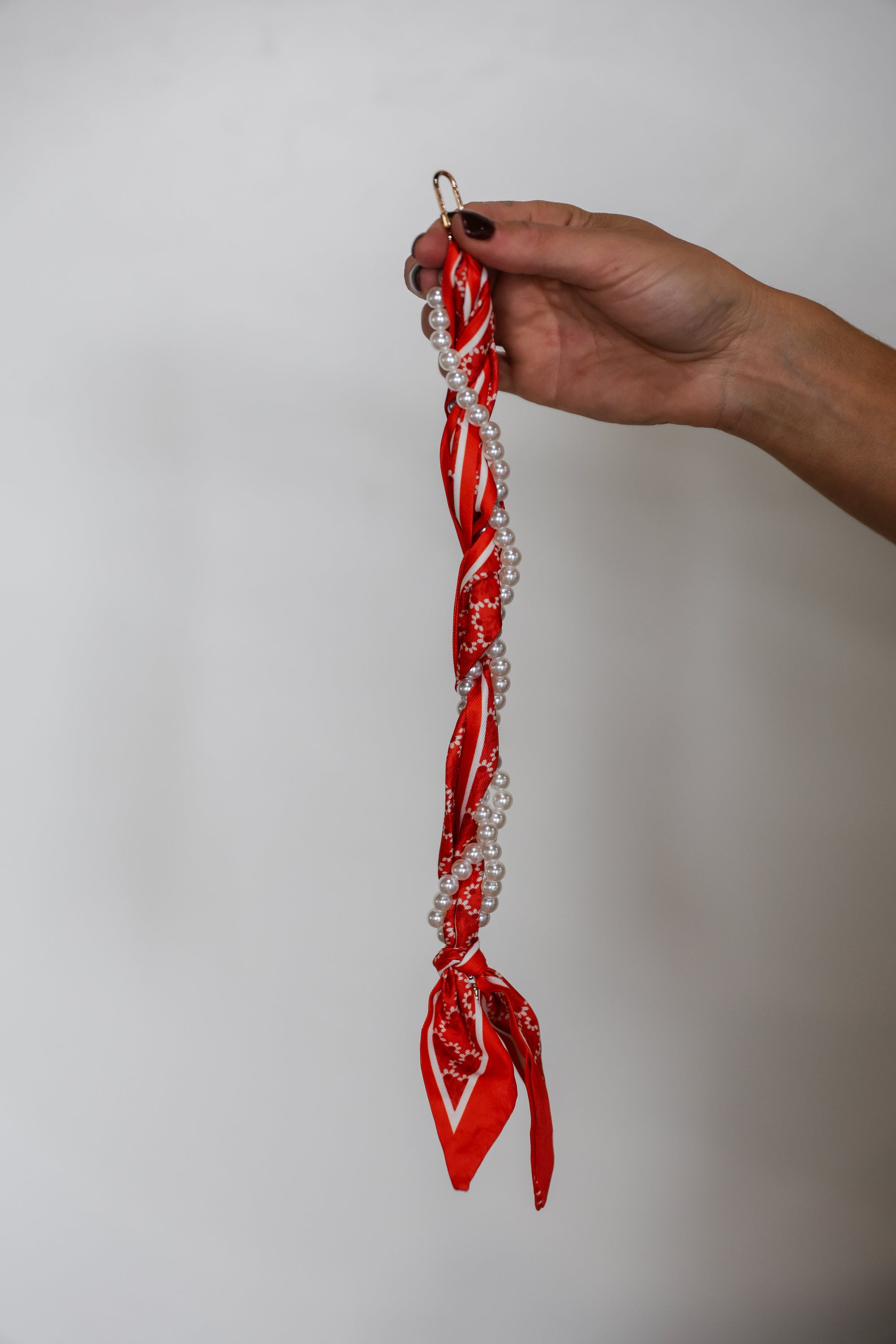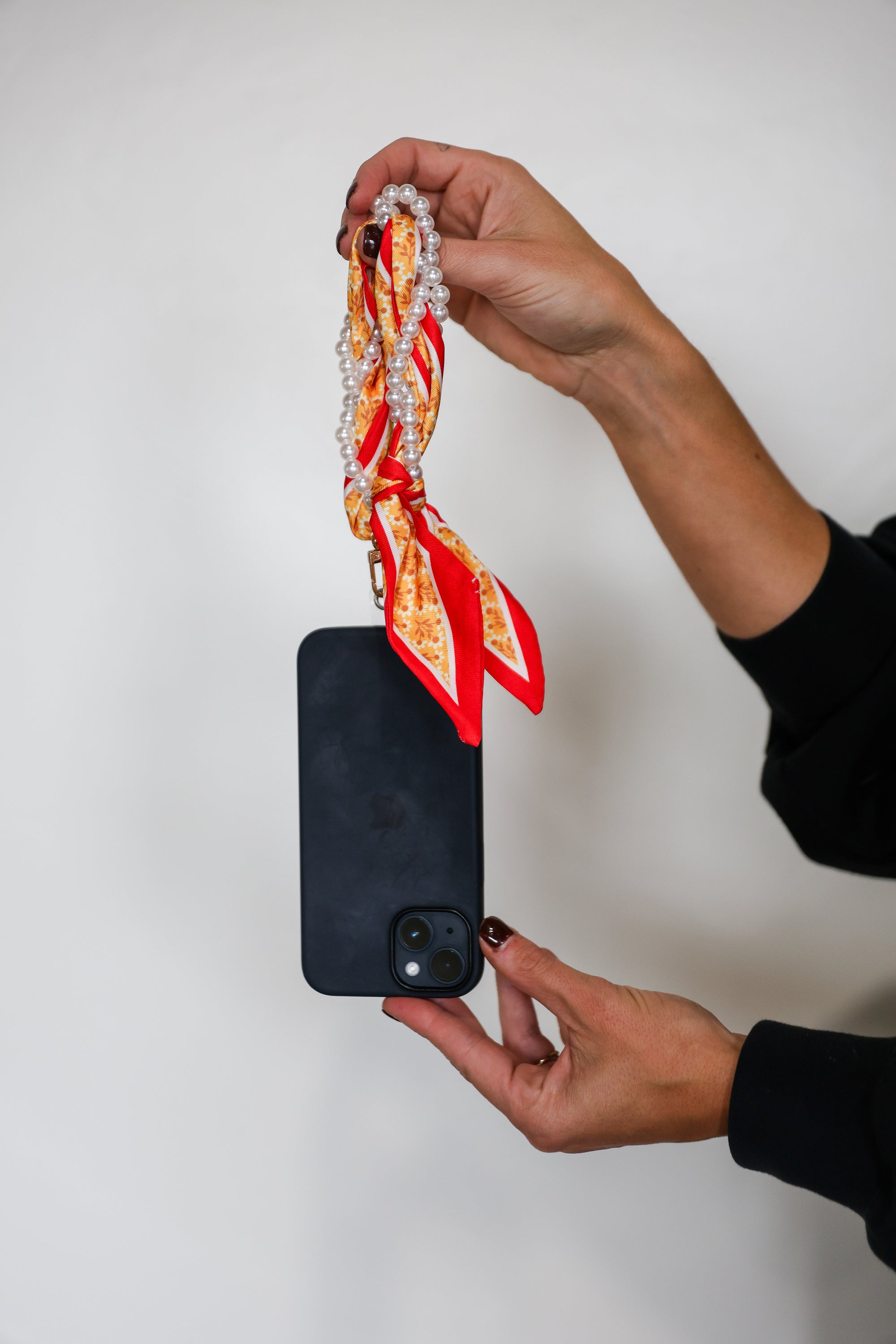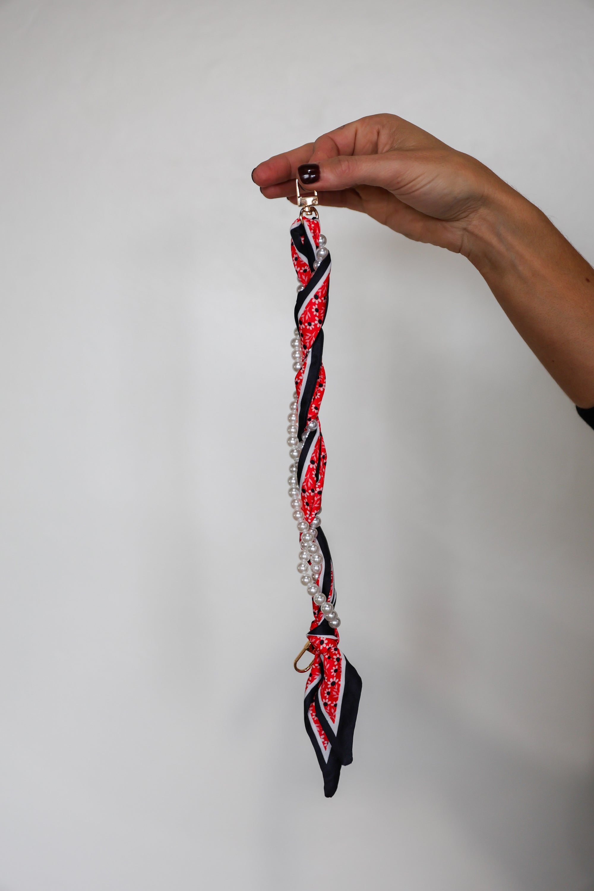 Woven Scarf Pearl Phone Strap/Wristlet - Red