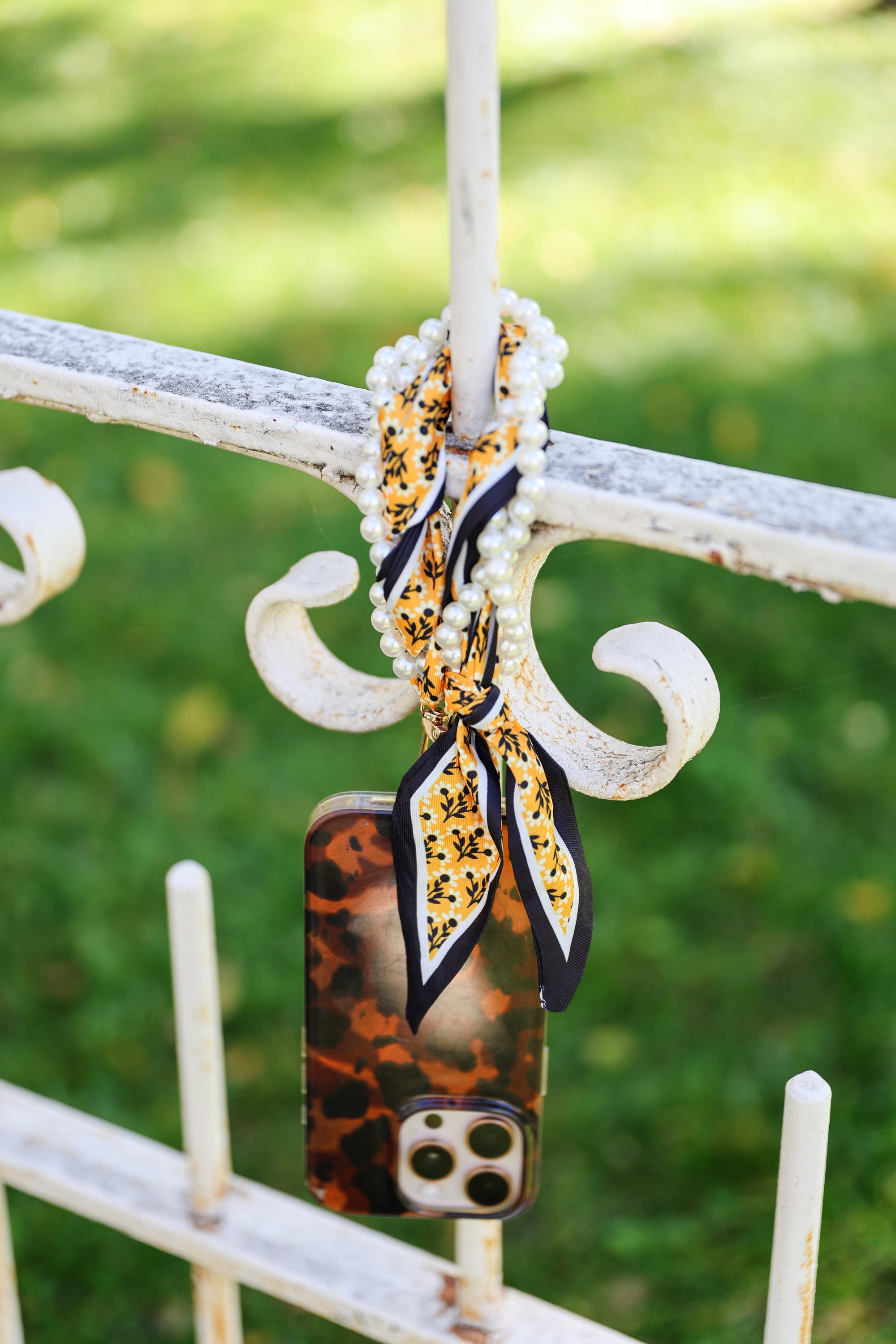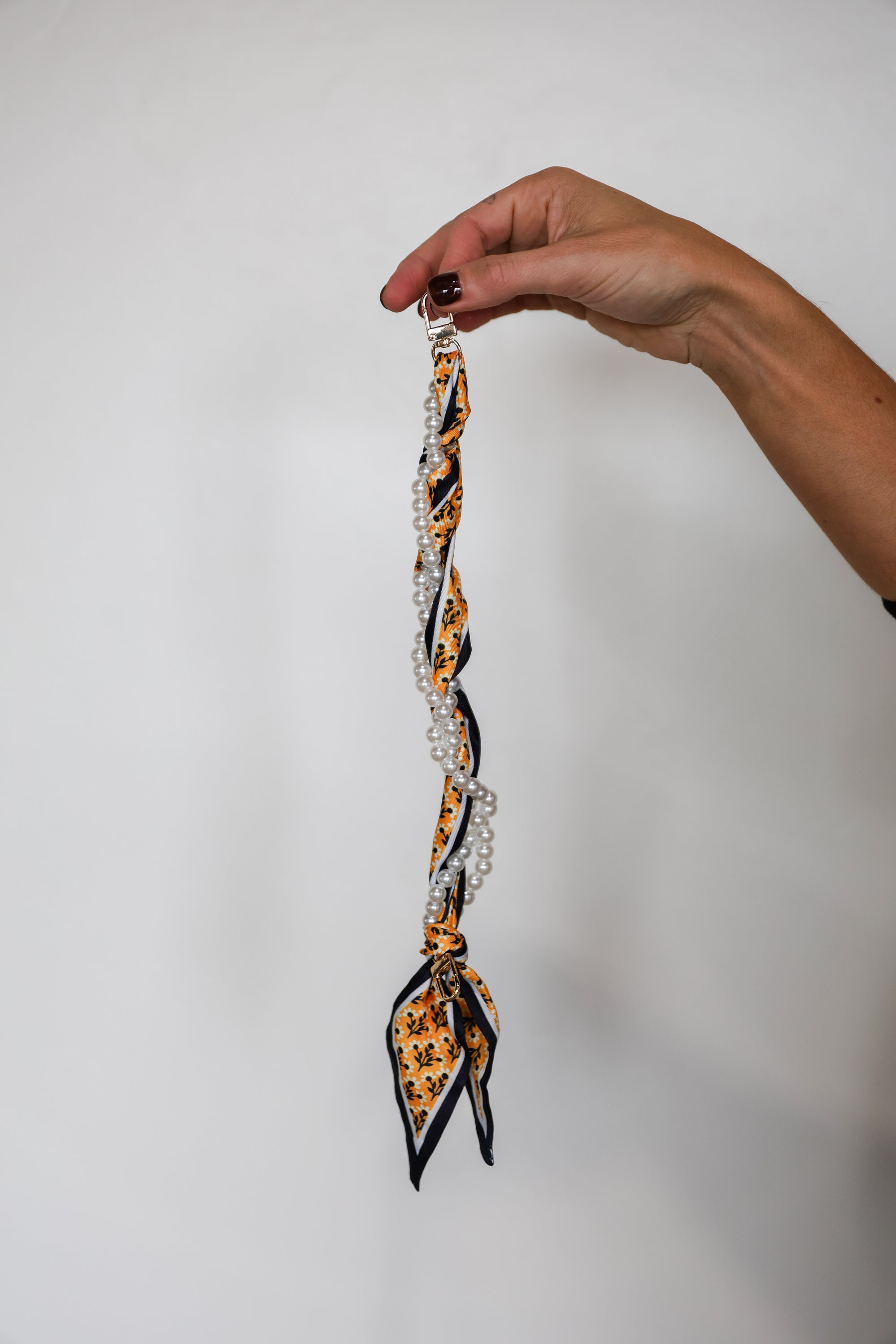 Woven Scarf Pearl Phone Strap/Wristlet - Black & Yellow