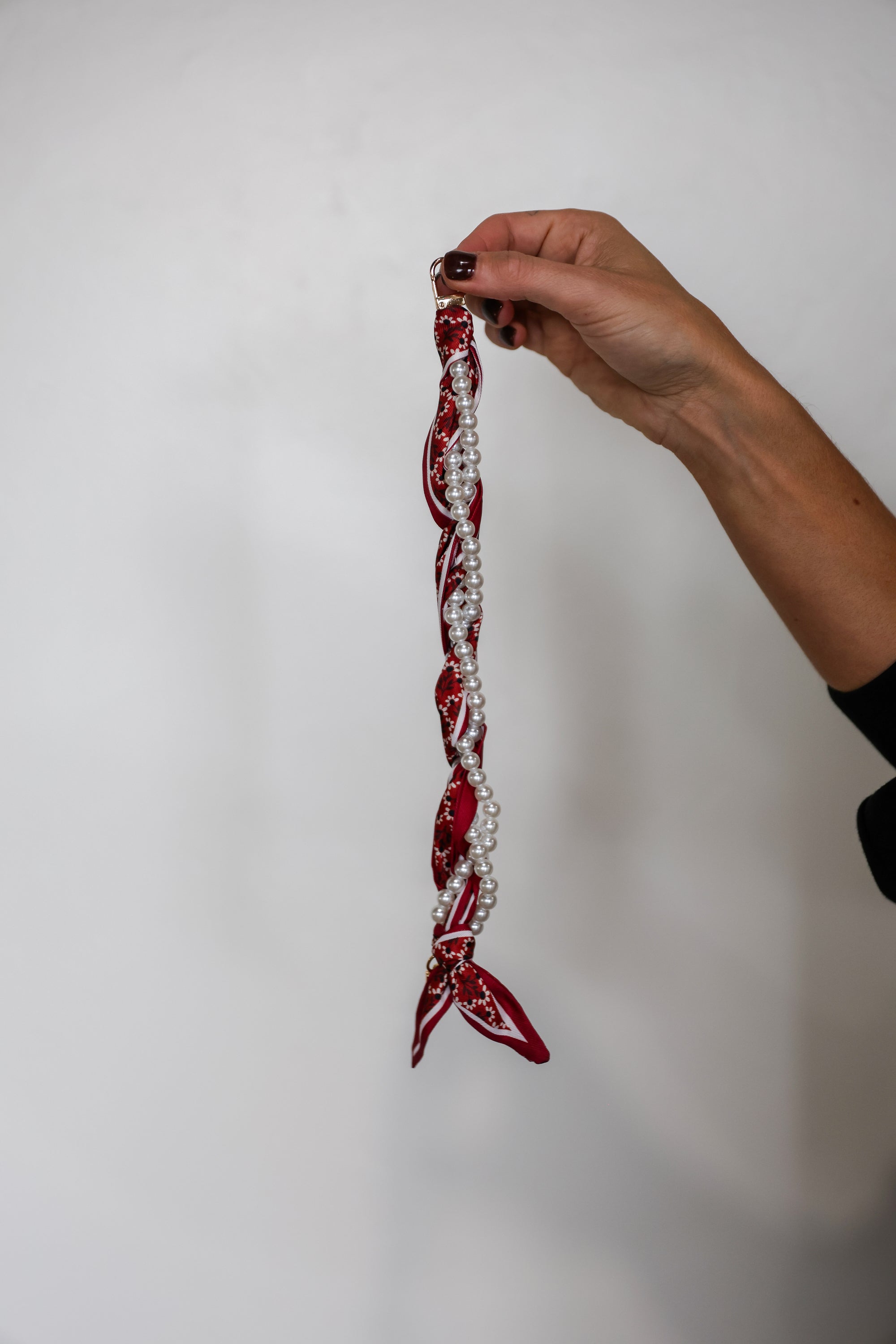 Woven Scarf Pearl Phone Strap/Wristlet - Crimson