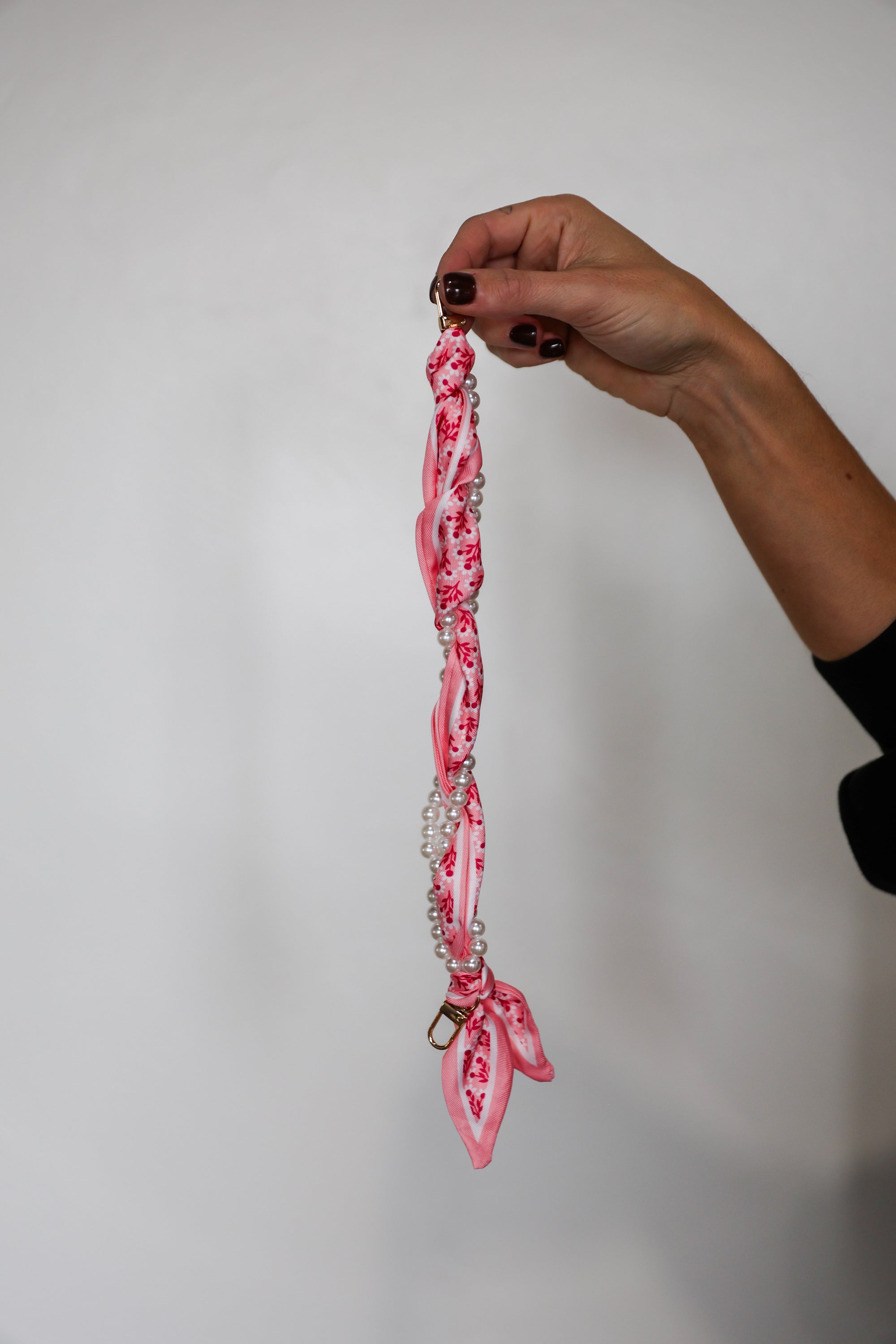 Woven Scarf Pearl Phone Strap/Wristlet - Pink
