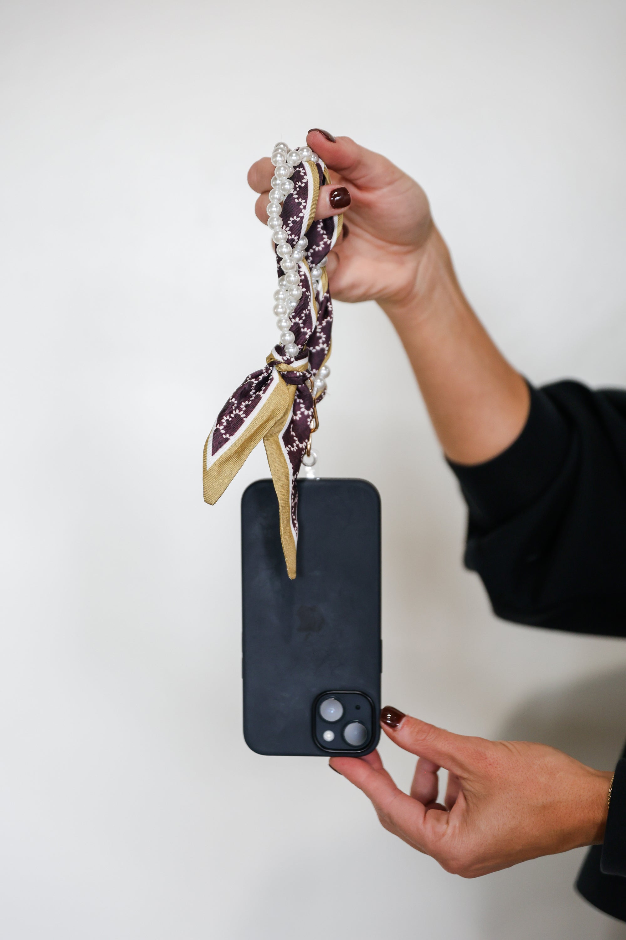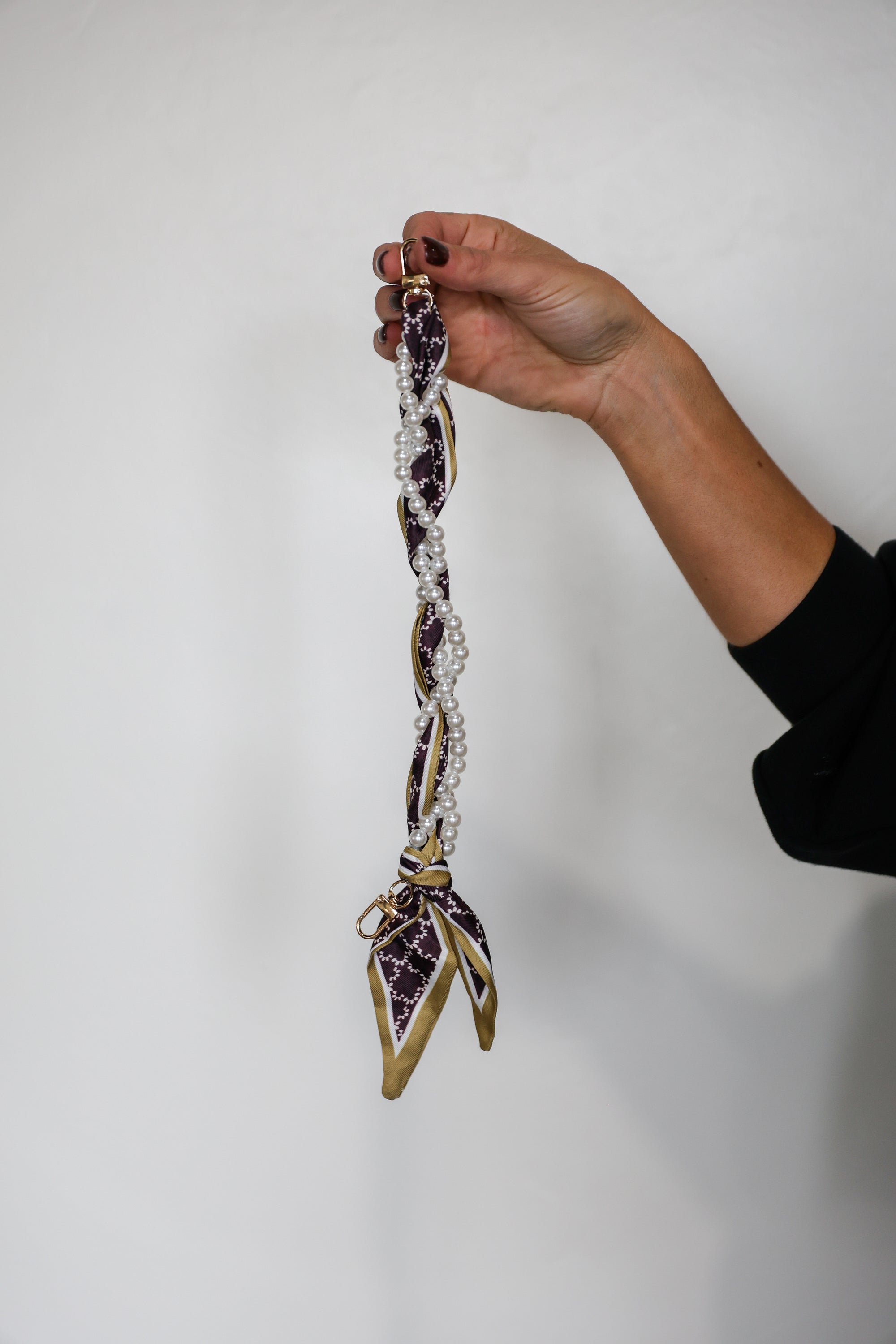 Woven Scarf Pearl Phone Strap/Wristlet - Maroon