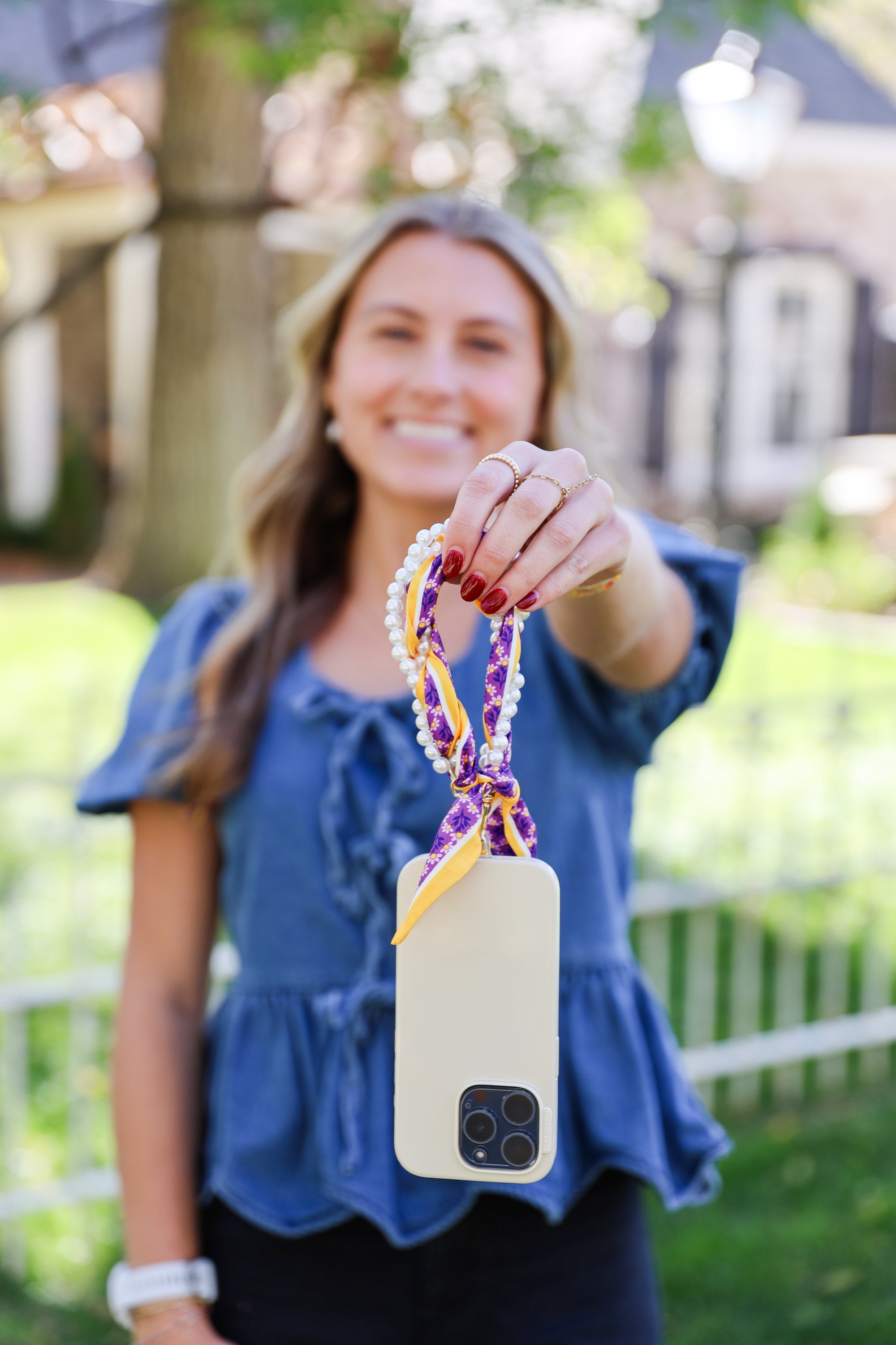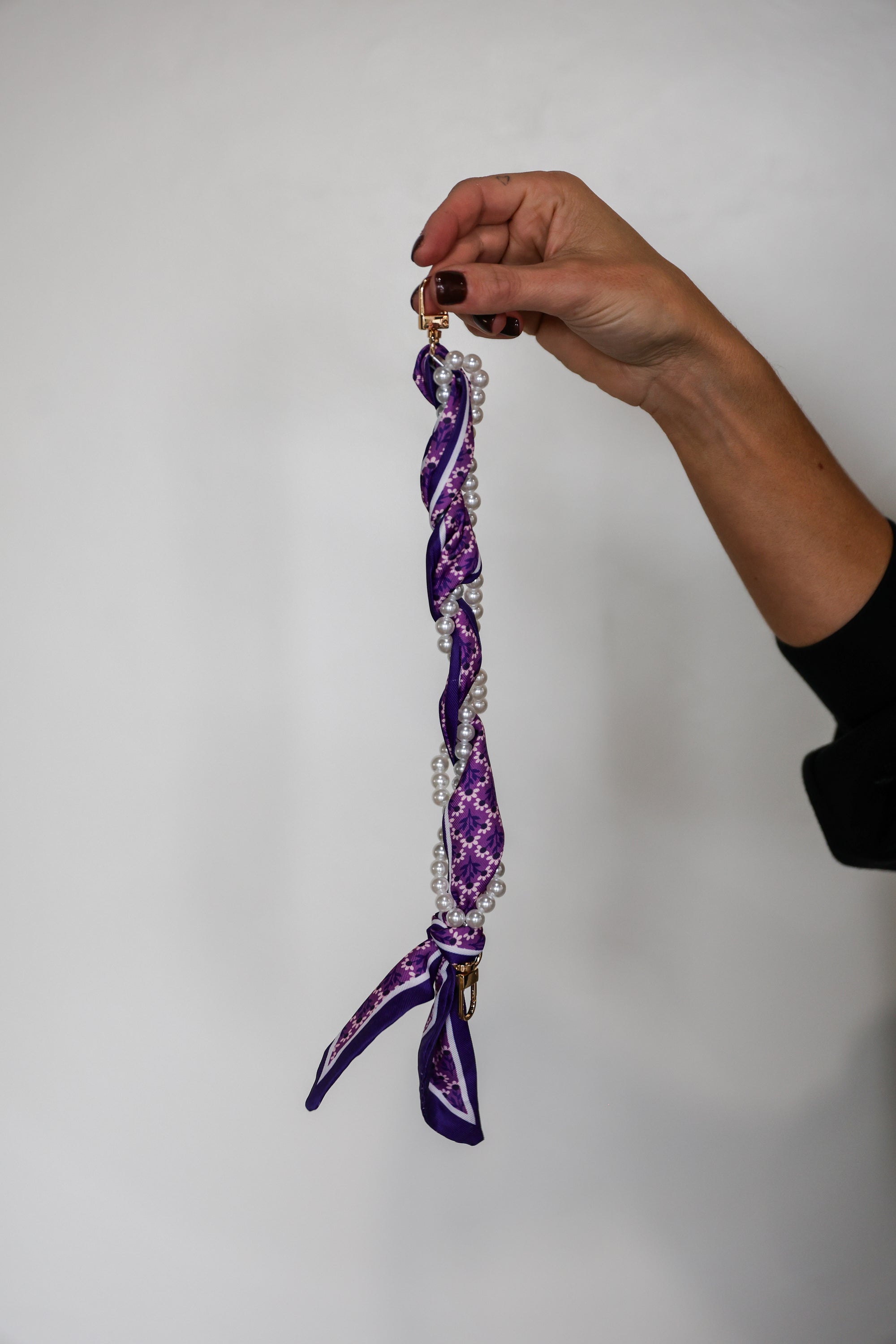 Woven Scarf Pearl Phone Strap/Wristlet - Purple