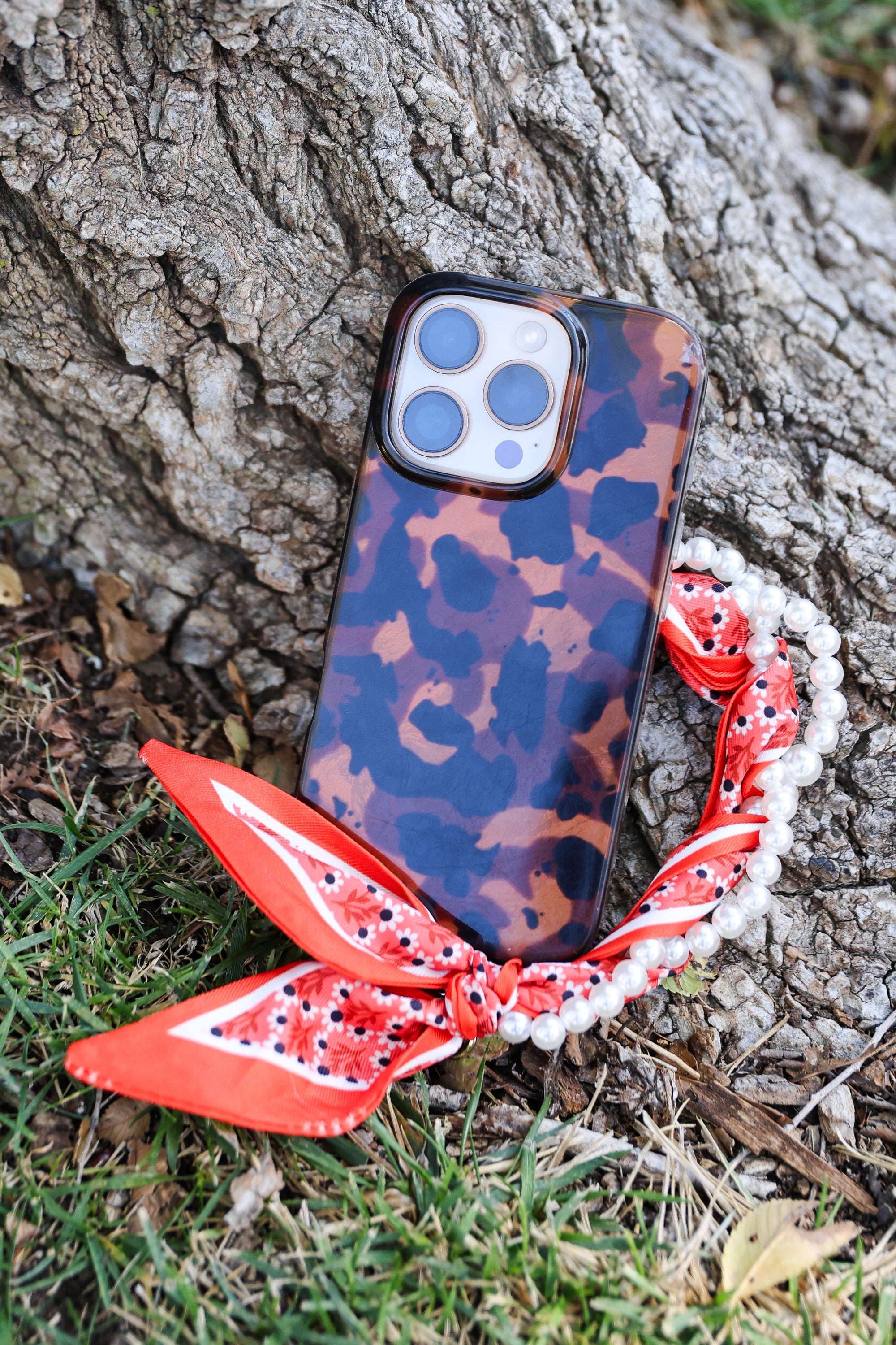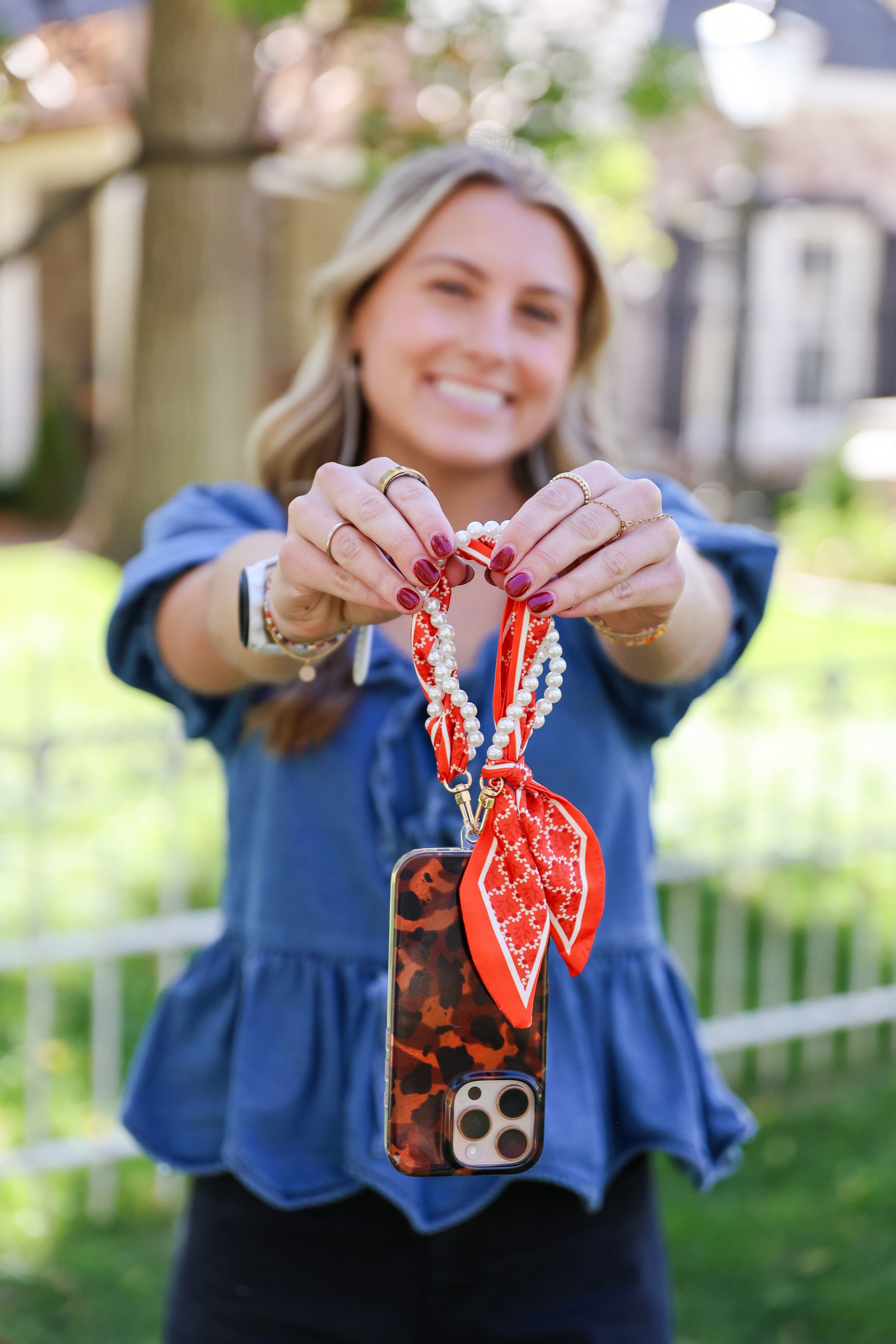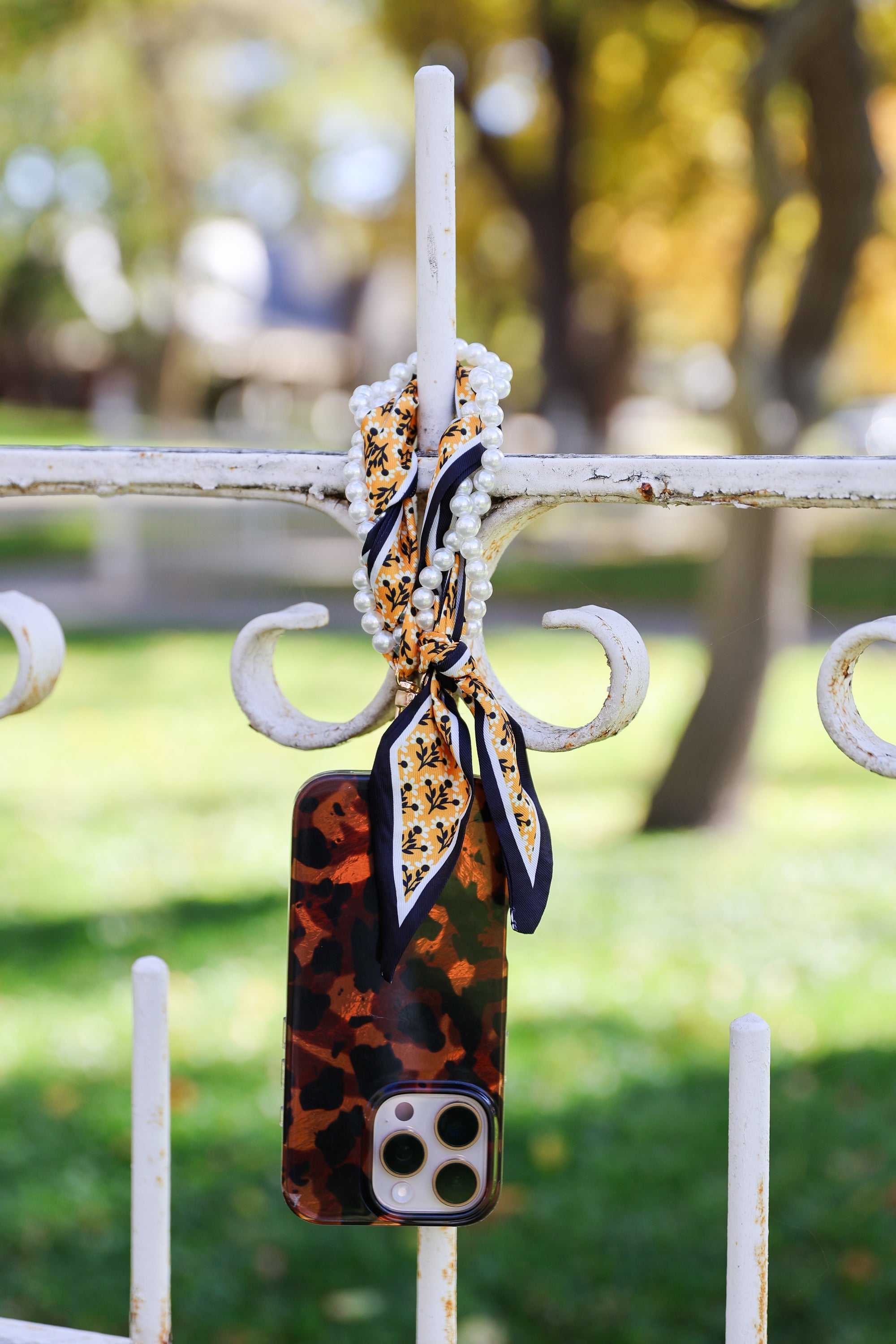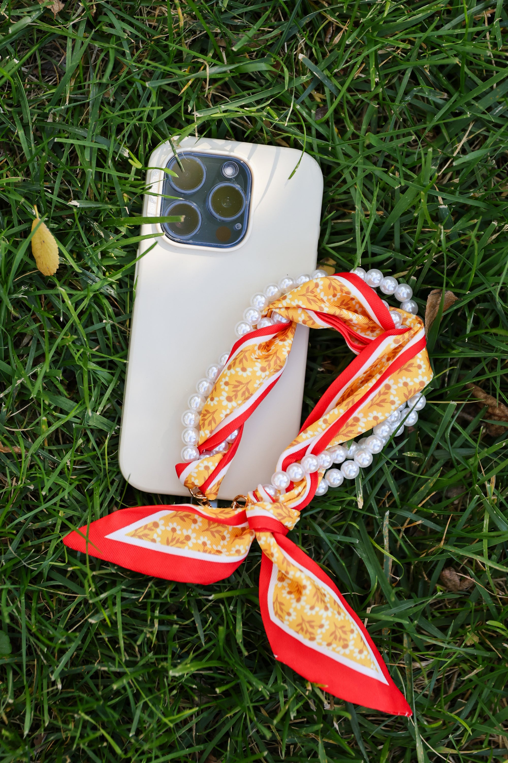 Woven Scarf Pearl Phone Strap/Wristlet - Burnt Orange